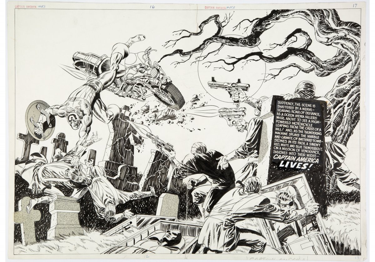 COMMENTS: Jim Steranko pencils and inks; pages 12-13; 1969; image size 21.25" x 15"