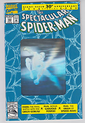 Sal Buscema cover/art; "Death" of Harry Osborn; Green Goblin app; Holo-Grafx cover; COMIC BOOK IMPACT rating of 6 (CBI)