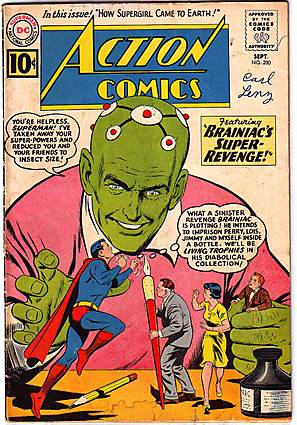 classic Swan Brainiac cover; COMIC BOOK IMPACT rating of 6 (CBI)