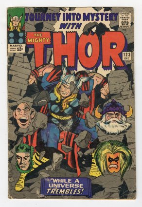 1st app of Queen Ula; 2nd app of Hercules; Thor reveals identity to Jane Foster; Jack Kirby cover & art; COMIC BOOK IMPACT rating of 6 (CBI)