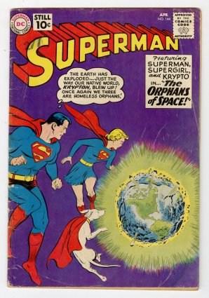 Curt Swan Earth destruction cover; Supergirl, Krypto cover; COMIC BOOK IMPACT rating of 6 (CBI)