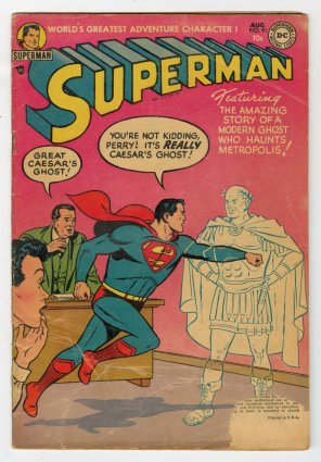 Al Plastino Superman vs Great Caesar's Ghost battle cover, Boring art; full page ad for Congo Bill #1