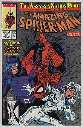 investment grade Mark Bagley cover/pencils; Randy Emberlin inks; Venom app; Letter9 page contains preview cover for #375. COMIC BOOK IMPACT rating of 6 (CBI)