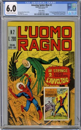 L'Uomo Ragno #2 Italian Edition (5/70). Contains ASM #2 (1st app: the Vulture) & Strange Tales #169; Ditko cvr/art;