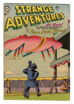 scarce; flying saucer, baseball cover; COMIC BOOK IMPACT rating of 6 (CBI)
