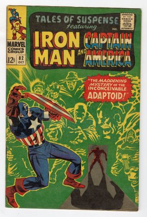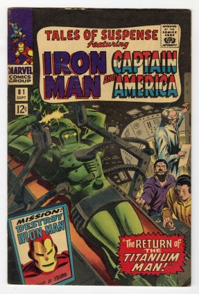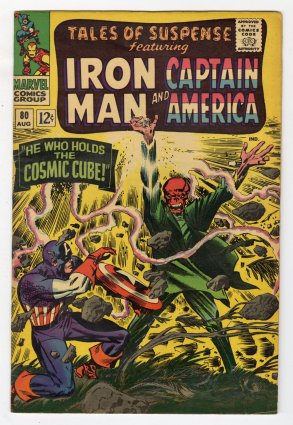 classic Jack Kirby Cap + Red Skull Cosmic Cube cover; 1st title crossover with Tales to Astonish #82; COMIC BOOK IMPACT rating of 7 (CBI)