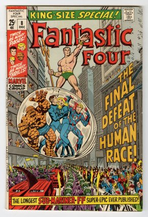 classic Kirby/Sinnott FF vs Subbie + Captain America (Invaders) cover (1976) COMIC BOOK IMPACT rating of 7 (CBI)