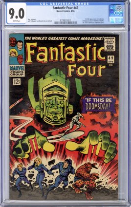 white pages 1st appearance of Galactus (full app.,The Devourer of Worlds); 2nd app of the Silver Surfer; Jack Kirby cover/art; COMIC BOOK IMPACT rating of 8 (CBI)