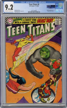 ow/white pages first Beast Boy in Teen Titans; an undervalued key (12/66) COMIC BOOK IMPACT rating of 6 (CBI) Pennsylvania Dutch Copy QES: Certified - criteria met: exceptional spine + perfect staple area + perfect cover edges