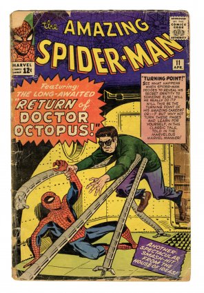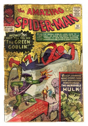 missing back cover 1st appearance Green Goblin (Norman Osborn); 1st Hulk meets Spider-Man; Steve Ditko cover & art; Comic Book Impact rating of 9 (CBI)