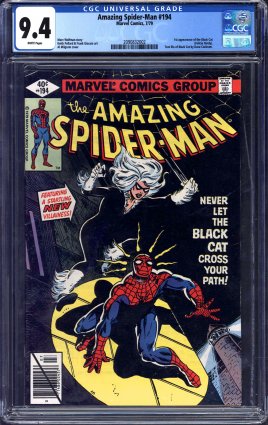 white pages; QES certified - criteria met: preferred staple placement + perfect staple area + perfect spine + perfect cover edges 1st app of Black Cat (Felicia Hardy); Al Milgrom cover; Keith Pollard/Frank Giacoia art; Letter page includes an alternative cover for #194 and Spider-Woman #9 by Keith Pollard