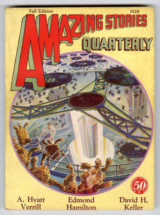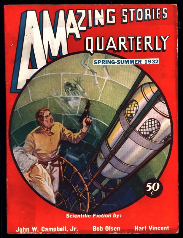 Summer, 1928; Frank Paul miniature people cover and interior illustrations; "The Sunken World" - 1st published story by Stanton A. Coblentz white pages; very sharp spine