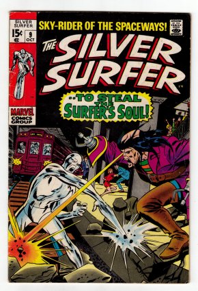 glossy! ow/white pgs John Buscema cover/art; "A World he Never Made!!" Pt. 1 of 2; Silver Surfer ventures among civilization in an effort to understand it better; COMIC BOOK IMPACT rating of 7 (CBI)