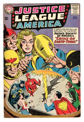 "Crisis on Earth-3"; 1st app. of the Crime Syndicate of America; JSA crossover; 1st Silver Age app. of Starman; COMIC BOOK IMPACT rating of 7 (CBI)