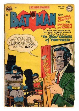 Win Mortimer Two-Face bondage cover; Dick Sprang/Bob Kane art; COMIC BOOK IMPACT rating of 7 (CBI)