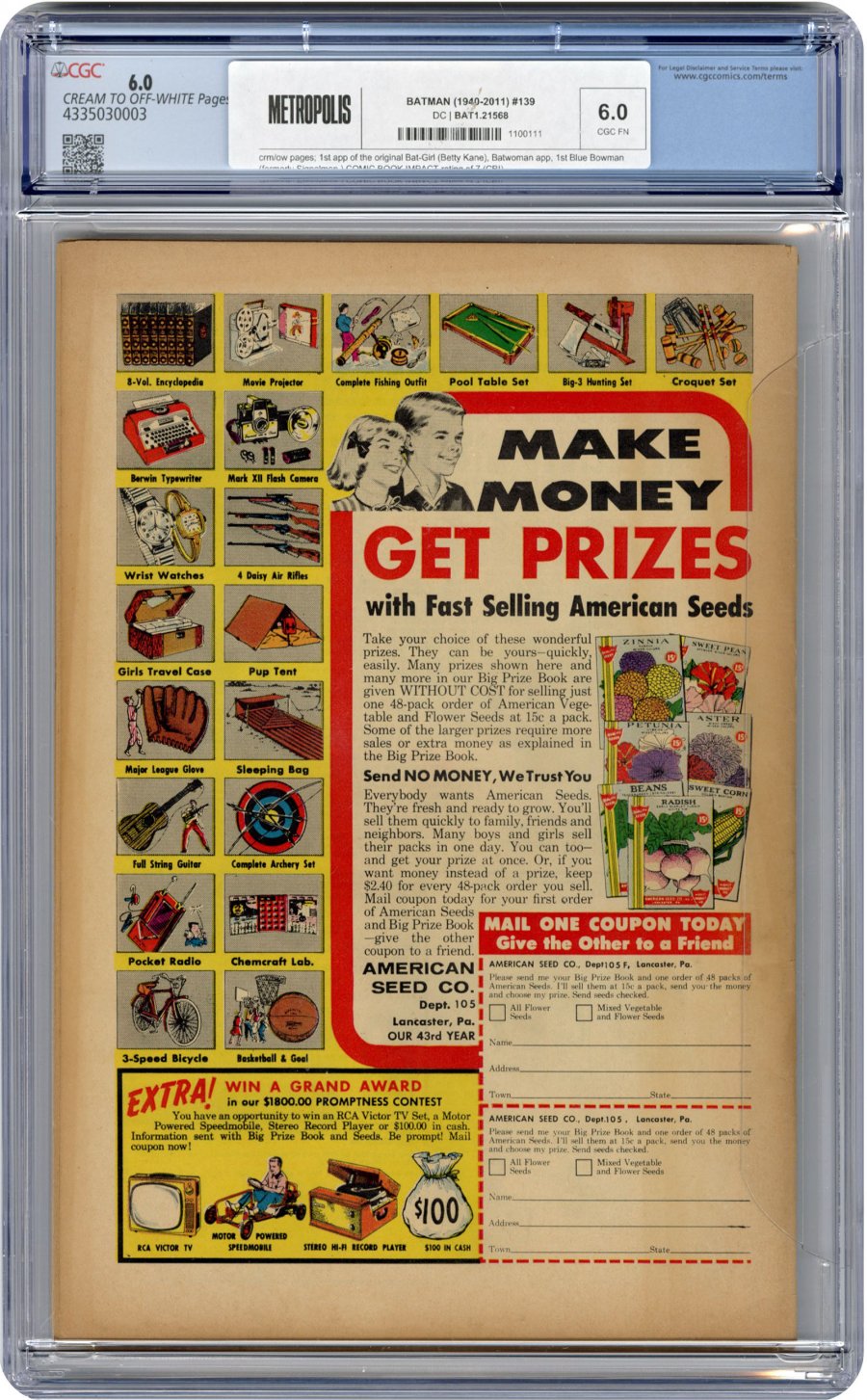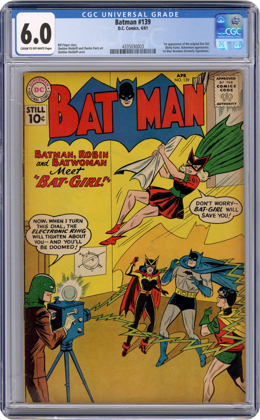 1st app of the original Bat-Girl (Betty Kane), Batwoman app, 1st Blue Bowman (formerly Signalman ) COMIC BOOK IMPACT rating of 7 (CBI)