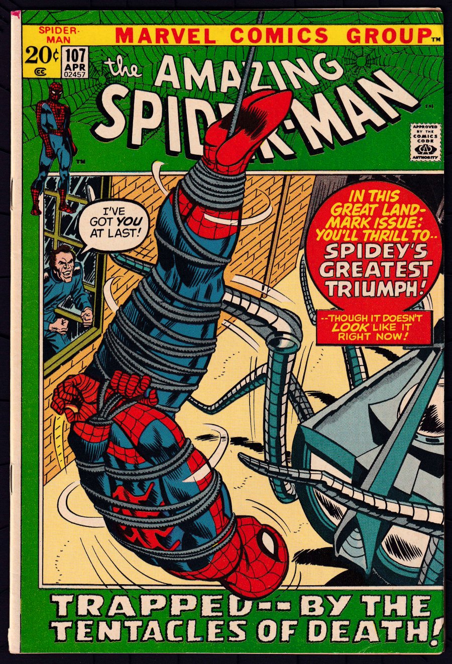 Romita art; COMIC BOOK IMPACT rating of 6 (CBI)Cover by John Romita Jr. and Frank Giacoia. Spidey Smashes Through! script by Stan Lee, pencils by John Romita Sr., inks by Frank Giacoia; Spider-Man faces off against the upgraded Spider-Slayer; Spider-Man defeats all four leaders, then returns to Smythe's hideout, where he finds Smythe inside the Spider Slayer; And if he survives this bout, he'll have a few words for J. Jonah Jameson when he's done.