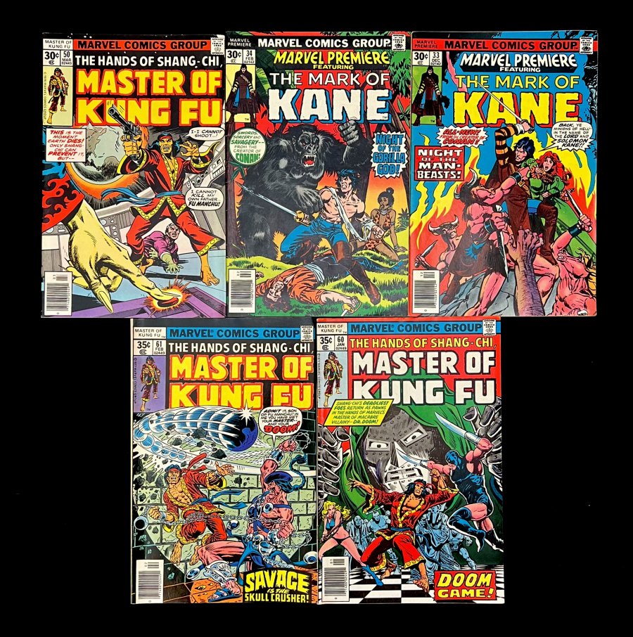 COMMENTS: Lot of 13 comics; Web of Spider-Man, Marvel Premiere, Master of Kung Fu, Saga of Crystar; Avg. grade 7.0; Est. value of $75