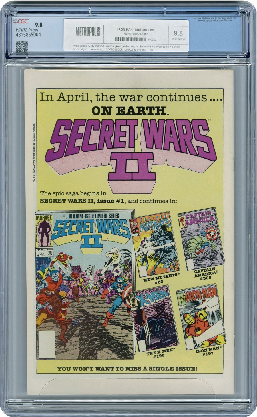 COMMENTS: white pages: QES certified - criteria given: perfect staple placement + perfect spine + perfect cover edges