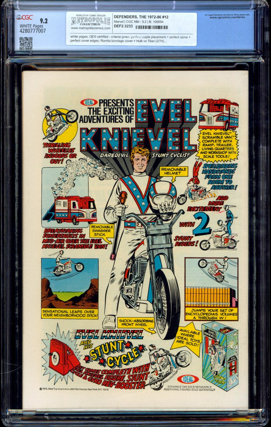 Romita bondage cover + Hulk vs Titan (2/74) COMIC BOOK IMPACT rating of 6 (CBI)Last 20-cent cover price. Cover art by John Romita. The Titan Strikes Back!, script by Len Wein, pencils by Sal Buscema (layouts) and Jack Abel (finished art), inks by Jack Abel; Xemnu the Titan returns and takes over a small town before being stopped by the Defenders.