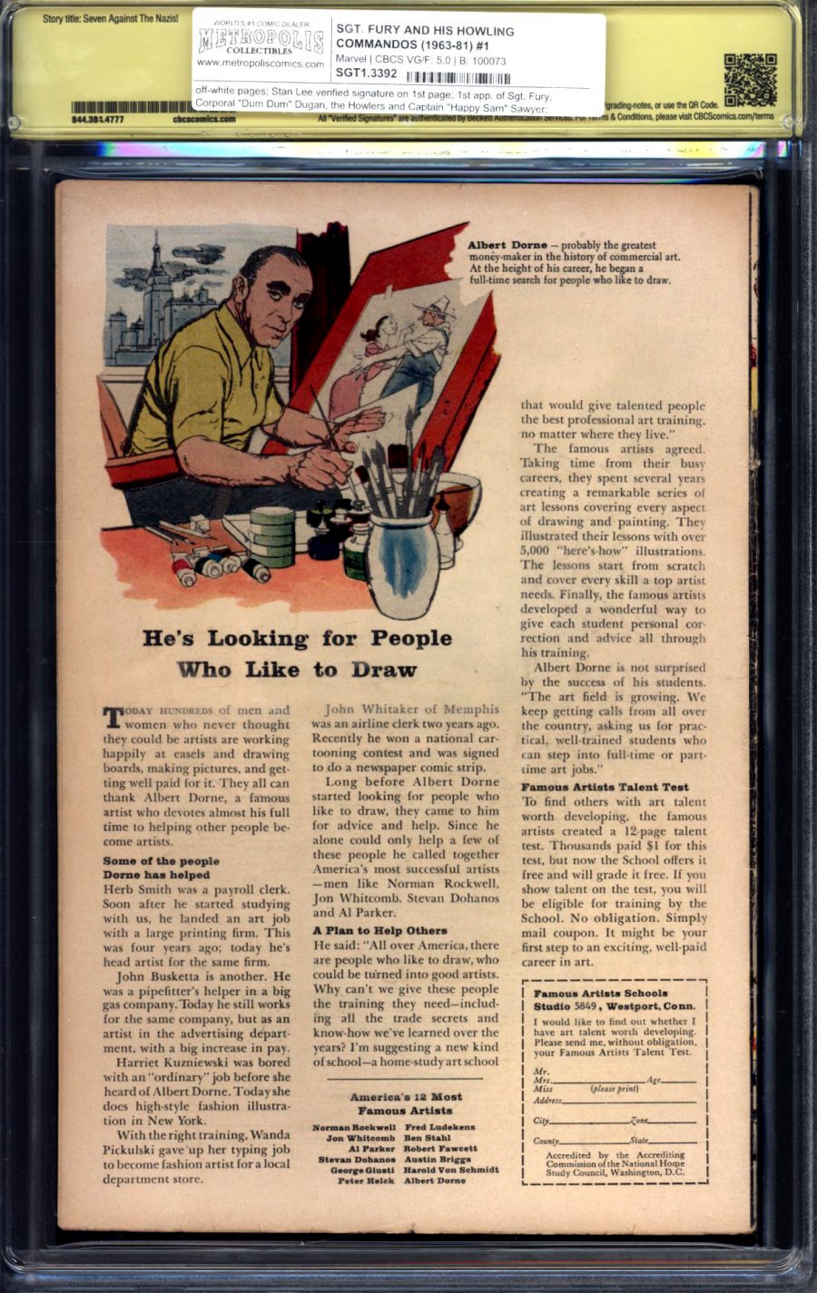 1st app. of Sgt. Nick Fury, Corporal "Dum Dum" Dugan, the Howlers and Captain "Happy Sam" Sawyer; COMIC BOOK IMPACT rating of 9 (CBI)