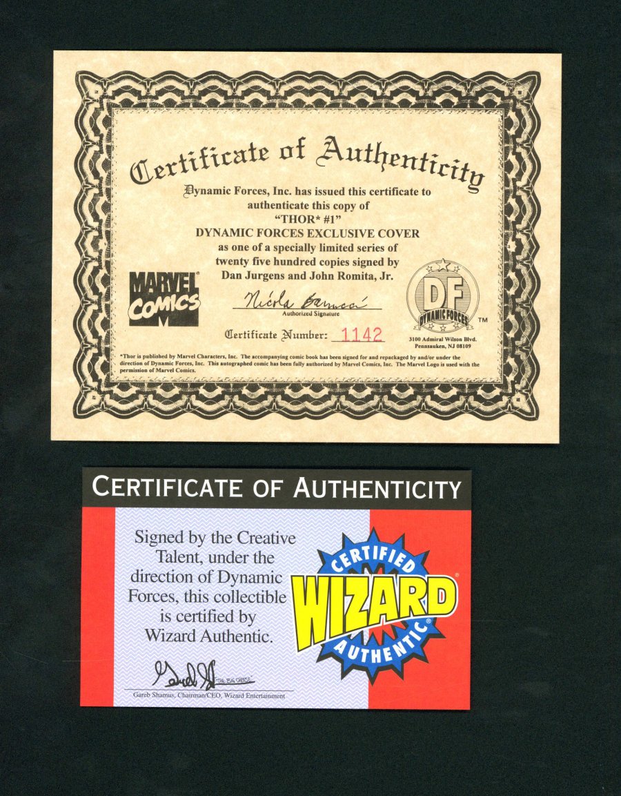 white pages, Jurgens/Romita Jr. signatures, Dynamic Forces edition w/COA #1142 of 2500