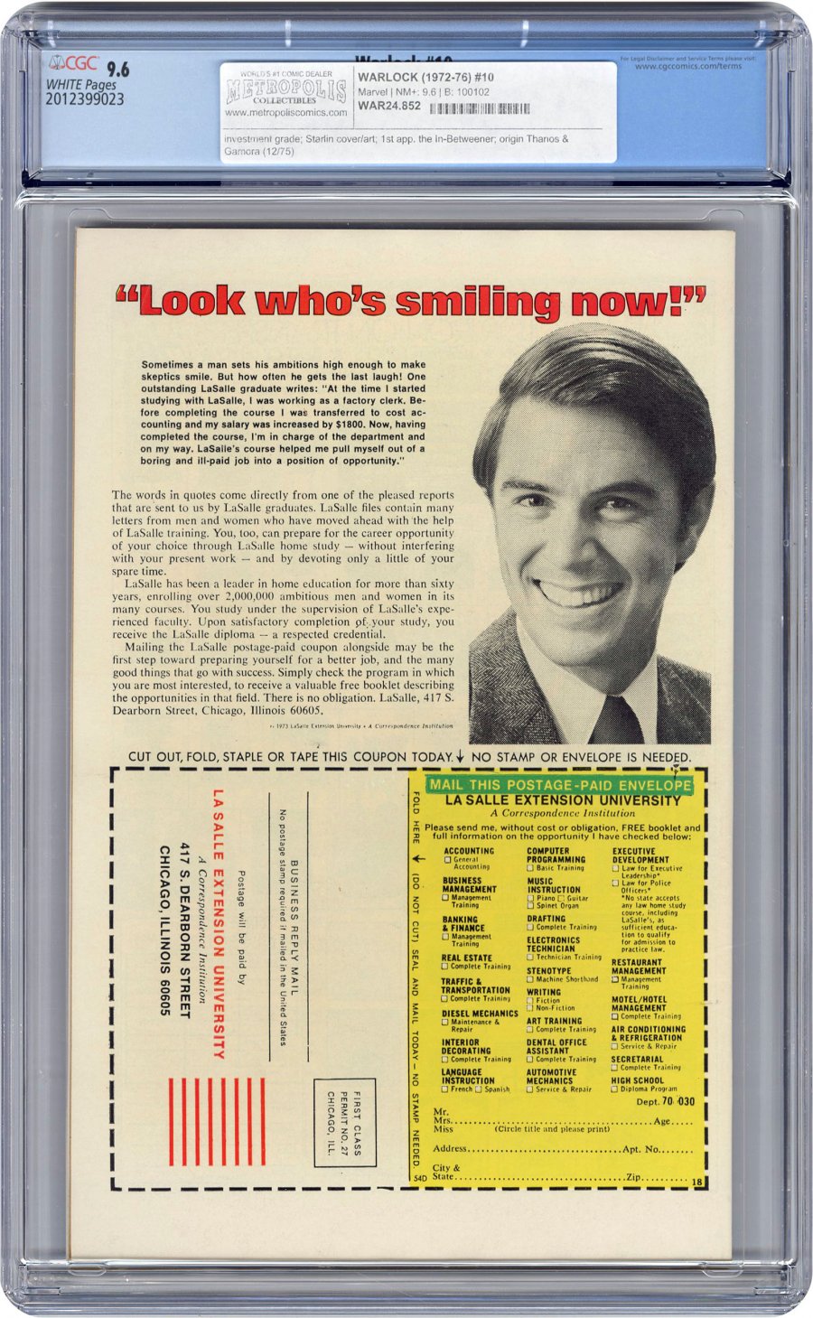 Starlin cover/art; 1st app. the In-Betweener; origin Thanos & Gamora (12/75) COMIC BOOK IMPACT rating of 7 (CBI)