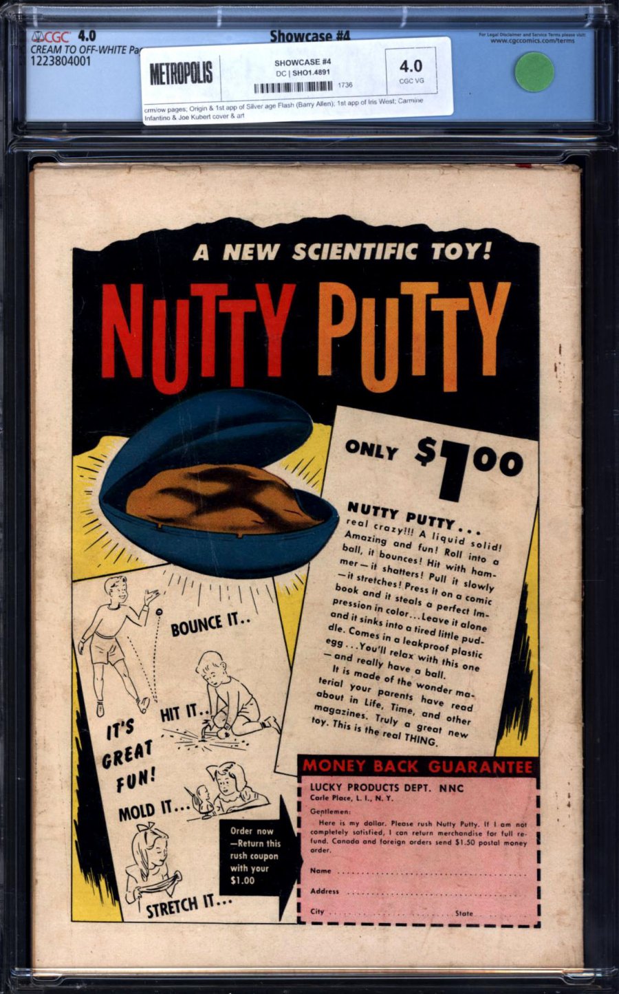 1st appearance of The Flash (Barry Allen) w/ origin; 1st app. Iris West; 1st Silver Age comic book; COMIC BOOK IMPACT rating of 10 (CBI)