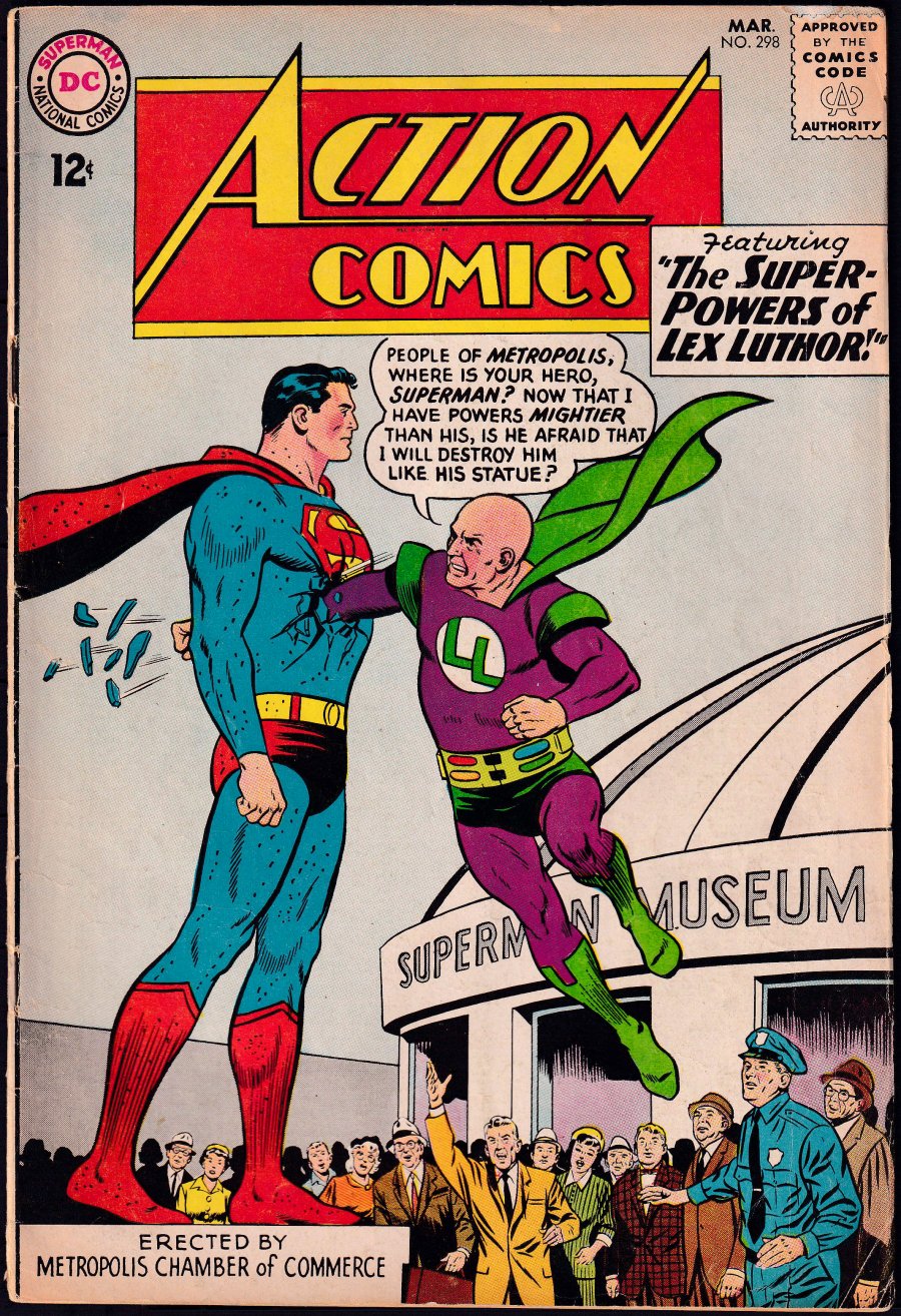 Luthor coverCover pencils by Curt Swan, inks by Sheldon Moldoff. "Clark Kent, Coward!", script by Leo Dorfman, pencils by Curt Swan, inks by George Klein; A hot air balloon accident in the mountains strands Clark, Lois, and Jimmy in the hidden city of Mystri-Lor, where the queen decides she wants Clark as a husband. One-page Peg story by Henry Boltinoff. "The Super-Powers of Lex Luthor!", script by Leo Dorfman, art by Jim Mooney; Luthor teams up with the escaped Phantom Zone villains, who give him super-powers, but they eventually turn on him and try to expose him, Supergirl, and Superman to Gold Kryptonite.