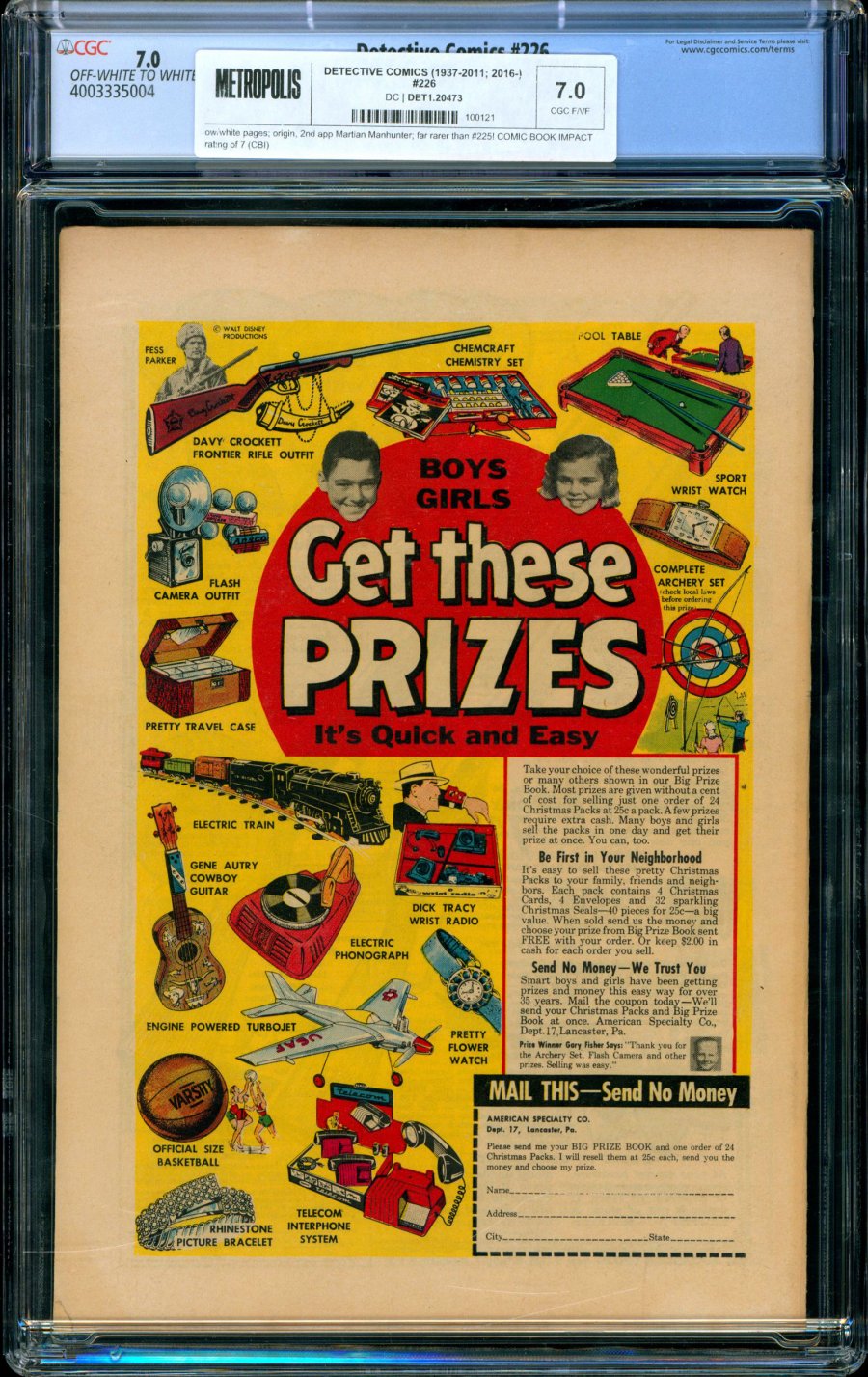 origin, 2nd app Martian Manhunter; far rarer than #225! COMIC BOOK IMPACT rating of 7 (CBI)