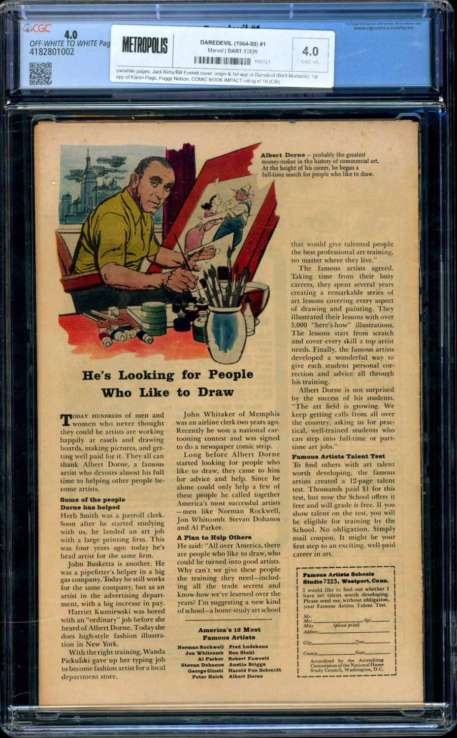1st appearance of Daredevil (Matt Murdock) w/ origin; 1st app of Karen Page, Foggy Nelson; Jack Kirby/Bill Everett cover; COMIC BOOK IMPACT rating of 10 (CBI)