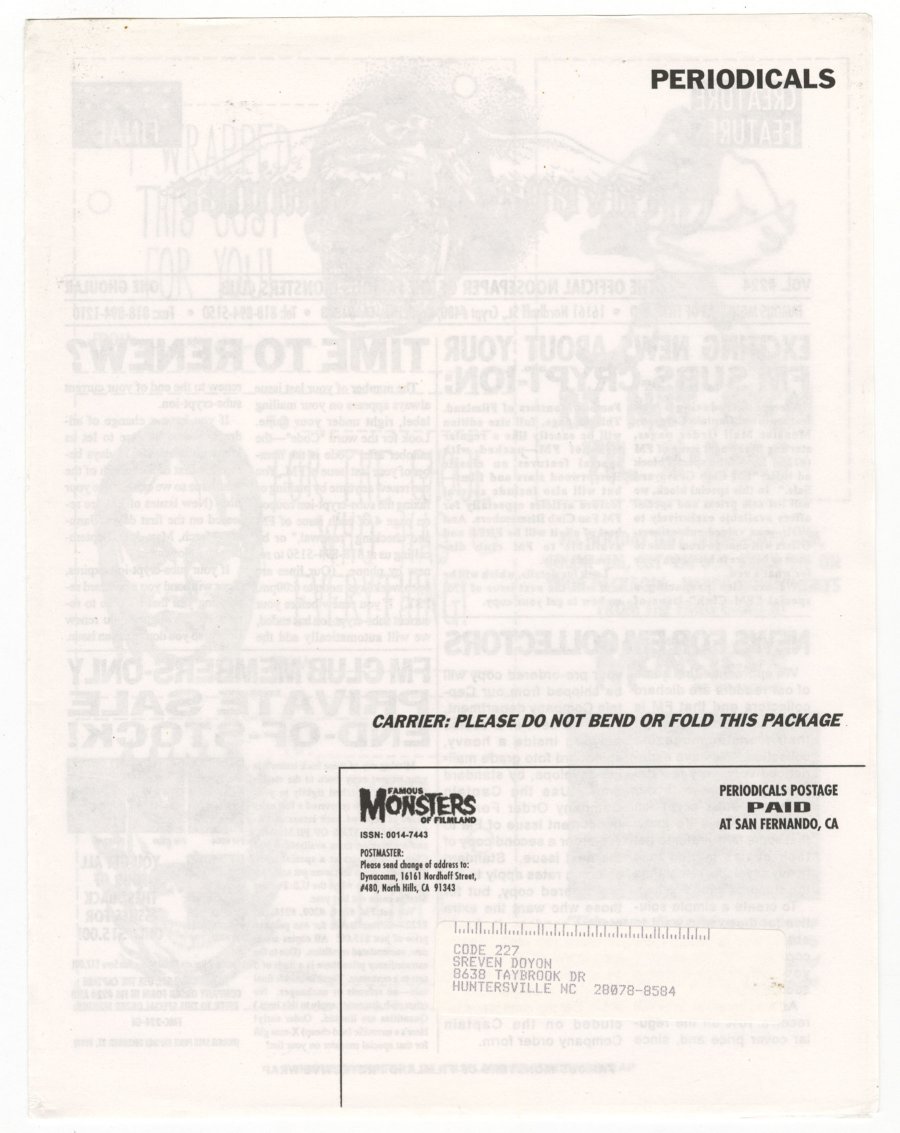 COMMENTS: includes subscriber-only issue of GRAVEYARD EXAMINER Valentin's promo