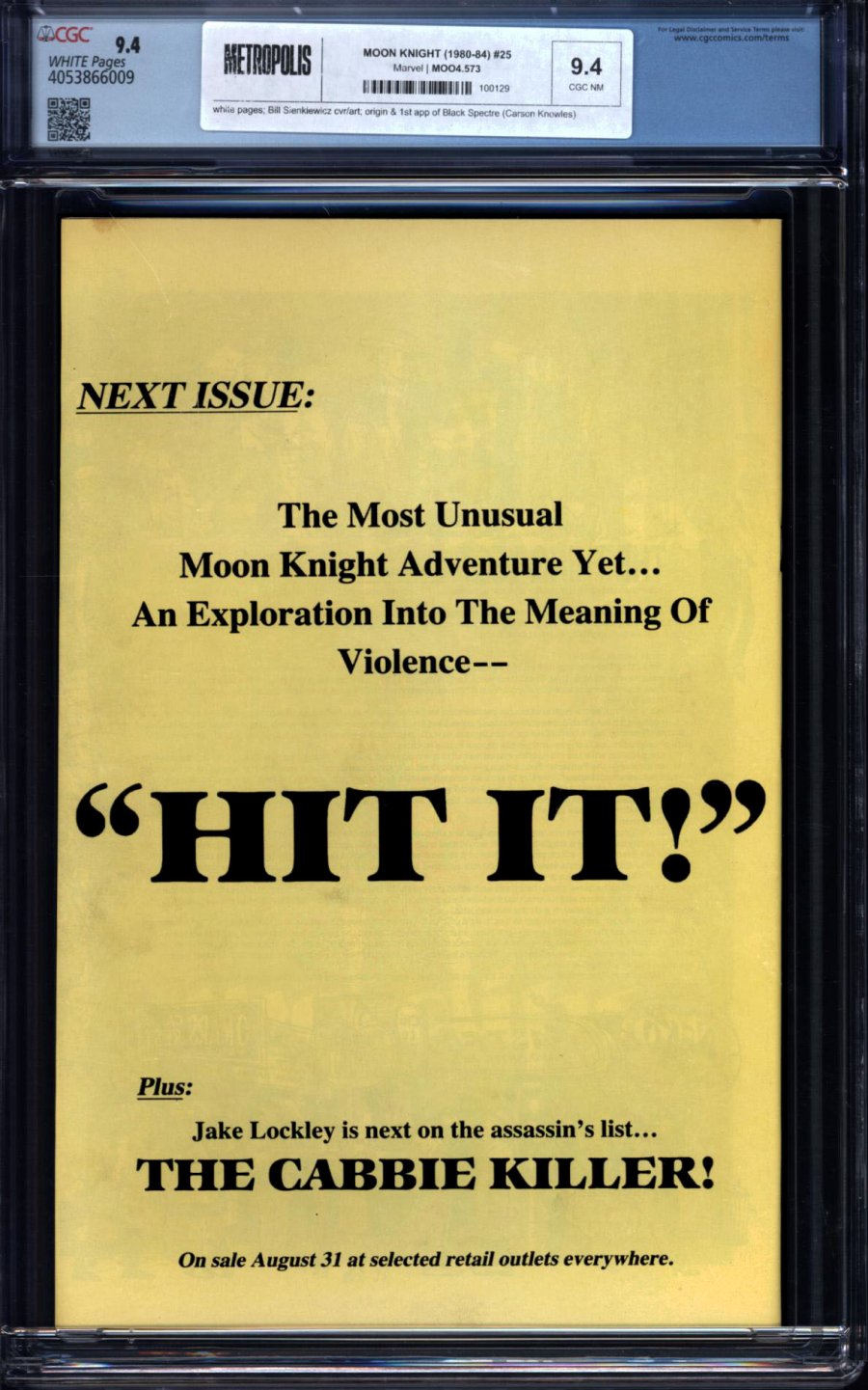 Bill Sienkiewicz cvr/art; origin & 1st app of Black Spectre (Carson Knowles)