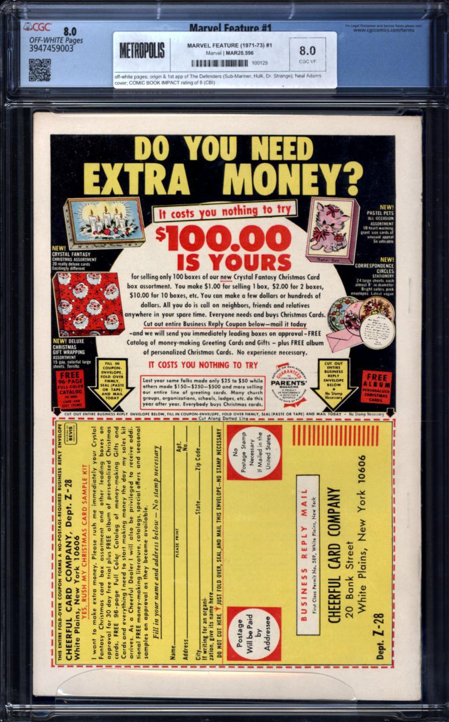 origin & 1st app of The Defenders (Sub-Mariner, Hulk, Dr. Strange); Neal Adams cover; COMIC BOOK IMPACT rating of 8 (CBI)As far as super-hero teams go, the Defenders are ultimately the most ragtag team of individuals trying to accomplish a single goal. Unlike the Avengers or Justice League, the Defenders are comprised of solo heroes with little to no affiliation with each other who mostly have their own agenda. With the cancellation of Doctor Strange’s comic, the formation of the team is the result of several crossover story arcs from Doctor Strange #183, Sub-Mariner #22, and Incredible Hulk #126, where the heroes unite to fight off an extra-dimensional invasion of demons. In the beginning the team was anchored by Strange and Hulk dealing with mystical threats, but unlike many other supergroups in comics the Defenders had a very unstable roster, including such disparate heroes as Silver Surfer, Valkyrie, and Luke Cage. Throughout the years the team would be led by different heroes assembling the squad for various missions, such as Doctor Strange forming his own "Secret Defenders" and Valkyrie enlisting her own "Fearless Defenders.” In 2014 Marvel teamed up with Netflix to create shows for their characters including Daredevil, Luke Cage, Jessica Jones, and Iron Fist, the heroes banded together in a crossover mini-series named “The Defenders,” making it the first on-screen appearance of the superhero team. With the Defenders now an A-list team in the comics world, and nearly all of their characters’ TV rights back with Marvel Studios a new series is likely in the works down the line, promising to drive up the value of this book once again.