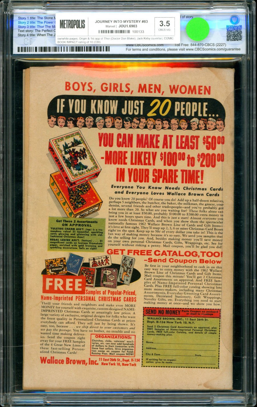 1st appearance of Thor (Dr. Don Blake) w/ origin; Jack Kirby cover/art; COMIC BOOK IMPACT rating of 10 (CBI)