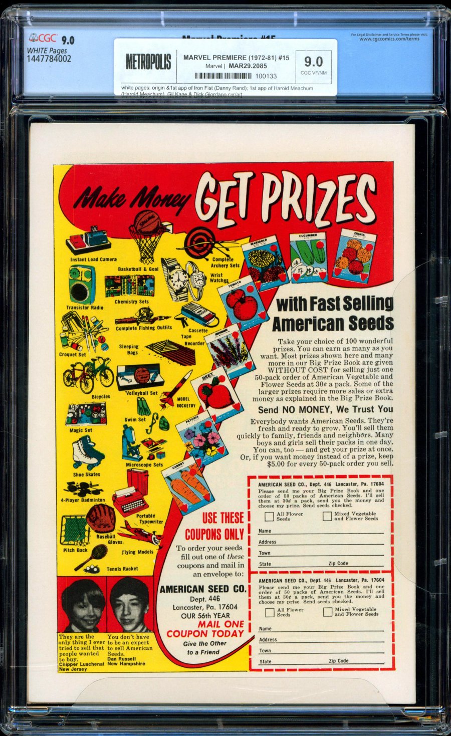 origin &1st app of Iron Fist (Danny Rand); 1st app of Harold Meachum; Gil Kane cover; COMIC BOOK IMPACT rating of 8 (CBI)Iron Fist was a character created by Marvel to cash in on the martial arts craze that swept over the USA in the 1970s, thanks in no small part to Bruce Lee, although the publisher had already dabbled in the chop-socky market with Shang-Chi, the Master of Kung-Fu, it stands to reason the company wanted to hedge its bets by adding a Caucasian, and superpowered hero into the mix. In Marvel Premiere #15 not only is Daniel Rand introduced to readers for the first time, but he comes complete with a tragic origin story about the death of his parents and his tutelage at a mysterious and mystic hidden city named K’un-Lun, which is only accessible once a decade. The troubled youth grows into martial arts master with a fist as hard as some kind of metallic alloy and endures rites of passage before setting out on a heroic quest. Iron Fist would remain a popular character in Marvel’s rogue’s gallery into the Modern Age, teaming up with Luke Cage, and the Daughters of the Dragon, and later joining Netflix’s hugely successful Marvel TV franchise. Although the Iron Fist series met to mixed enthusiasm, the character has remained a bankable property and copies of his first appearance are desirable collectibles for Bronze Age fans.
