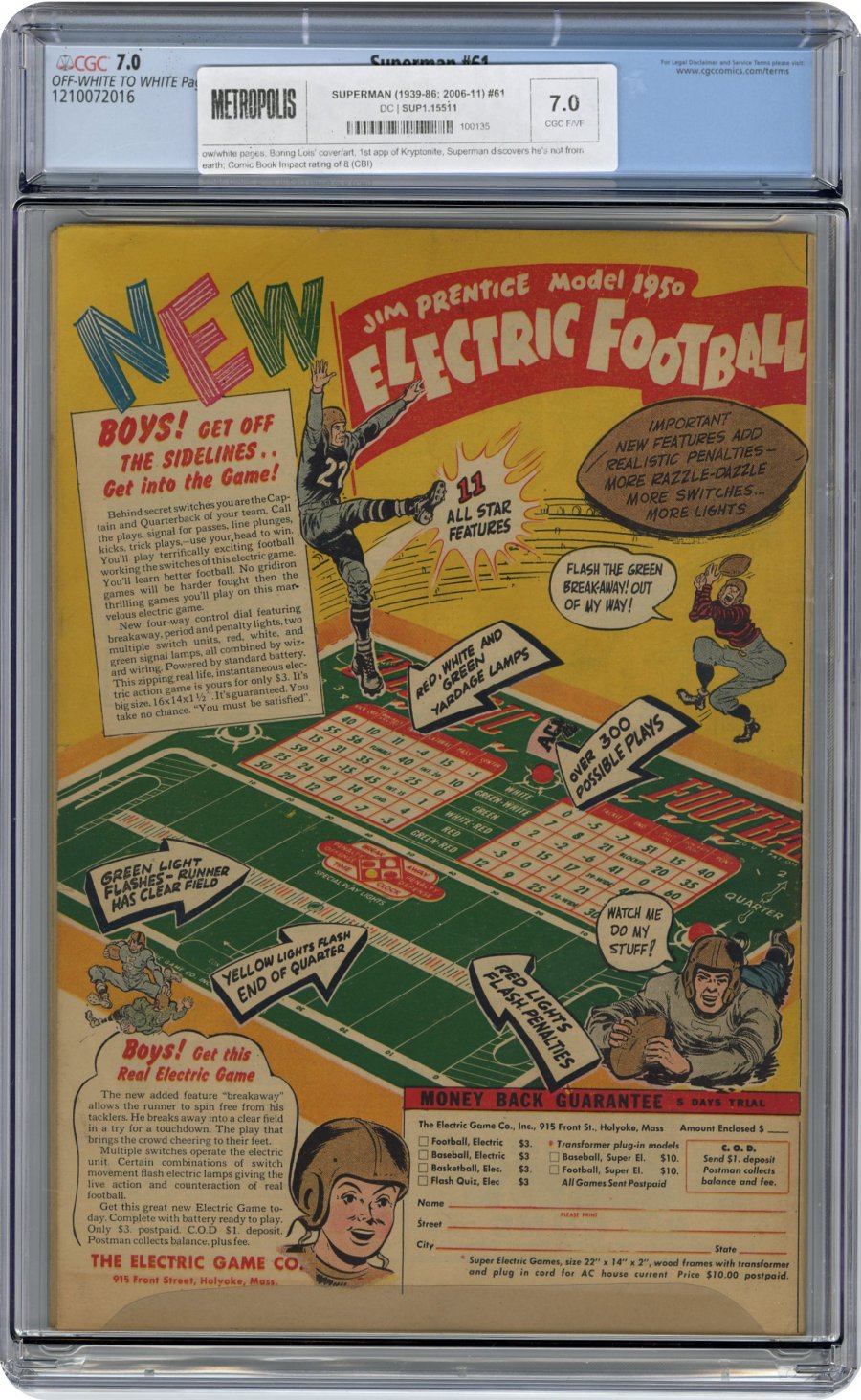 Boring Lois cover/art; 1st app of Kryptonite, Superman discovers he's not from earth; Comic Book Impact rating of 8 (CBI)origin retold; Superman returns to Krypton for the first time, 2nd 'Superman DC National Comics' logo