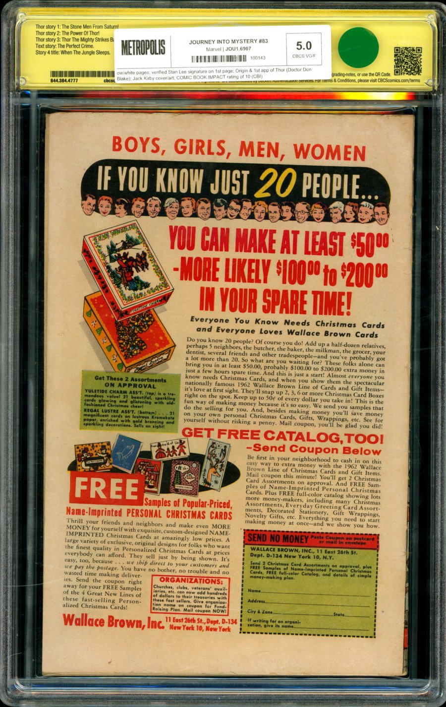 1st appearance of Thor (Dr. Don Blake) w/ origin; Jack Kirby cover/art; COMIC BOOK IMPACT rating of 10 (CBI)
