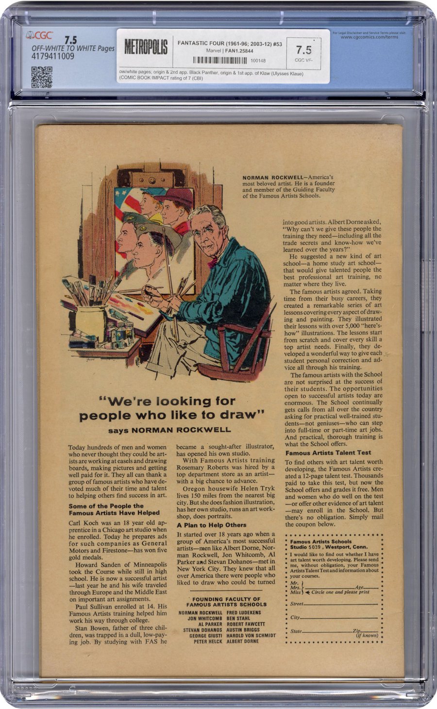 origin & 2nd app. Black Panther, origin & 1st app. of Klaw (Ulysses Klaue); COMIC BOOK IMPACT rating of 7 (CBI)