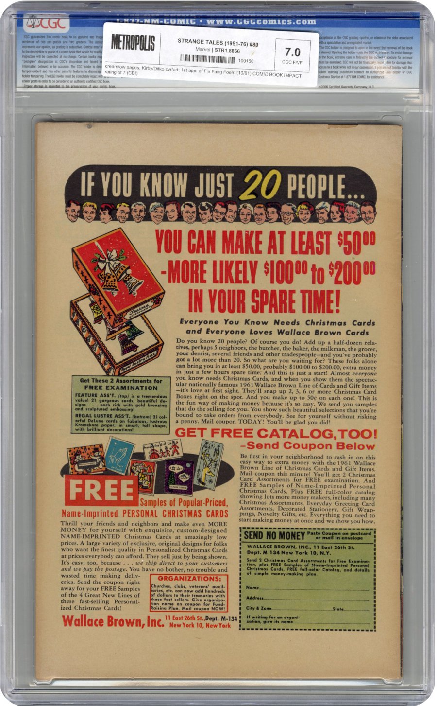 Kirby/Ditko cvr/art; 1st app. of Fin Fang Foom (10/61) COMIC BOOK IMPACT rating of 7 (CBI)Based on the name of an obscure British musical named Chu Chin Chow, Stan Lee adapted the mysterious sounding words to create the monstrous Fin Fang Foom. One of the few creations by Lee/Kirby from their absurdly named creature period that pre-dated the Marvel Age, at the very beginning of the Silver Age, and would last well into the modern era. Generally regarded as throwaway sensationalist sci-fi/horror one-offs, these early collaborations by Lee and Kirby would build the foundation that would support the Mighty Marvel empire which would quickly engulf popular culture starting with the launch of the Fantastic Four. But there was something enticing about this oddball Fin Fang Foom character, perhaps the memorable name and the fearsome dragonian appearance clicked and gave the creation staying power. But whatever the reason, Fin Fang Foom remains a cult favorite and holds a special place in the hearts of Marvelites everywhere. Picking up a copy of his first appearance may be a smart move, as you never know who will pop up in a future MCU or Disney+ property. Our bet is that FFF is a character that is ripe for the picking.