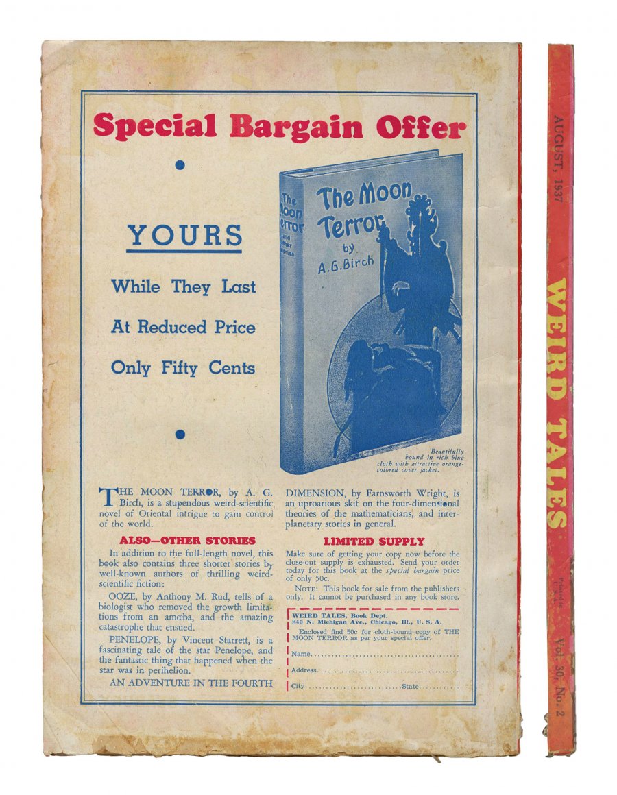 V30 #2 (August, 1937); Classic Brundage Good Girl/Amorphous Blob cover; Posthumous Howard verse; "The Statement of Randolph Carter" - Lovecraft (reprint); PULP IMPACT rating of 7 (PI)