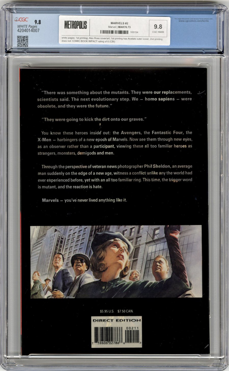 Alex Ross cover/art; 1st printing has Acetate outer cover, 2nd printing does not; COMIC BOOK IMPACT rating of 6 (CBI)