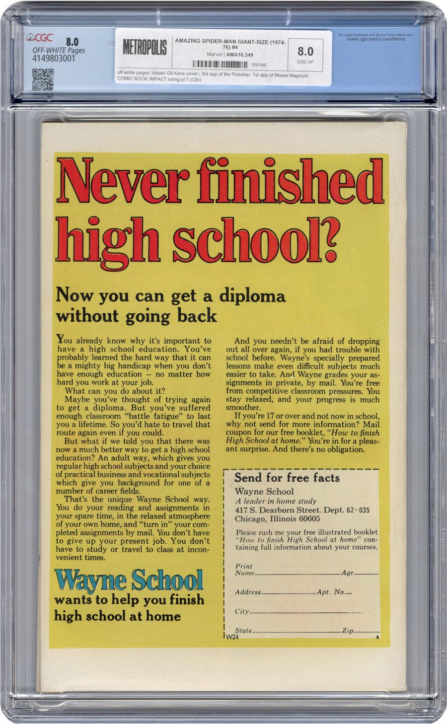 classic Gil Kane cover;; 3rd app of the Punisher. 1st app of Moses Magnum; COMIC BOOK IMPACT rating of 7 (CBI)