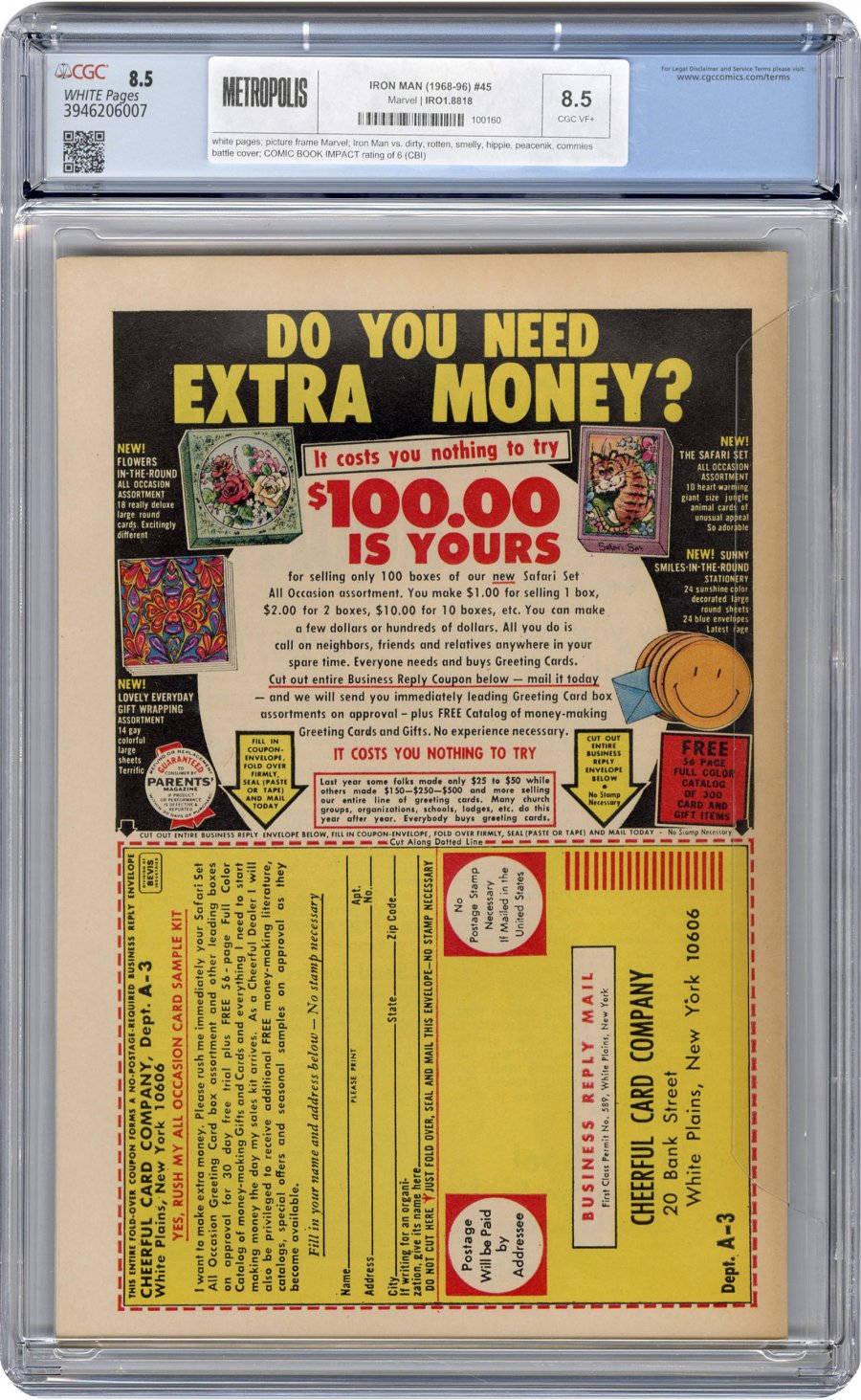 picture frame Marvel; Iron Man vs. dirty, rotten, smelly, hippie, peacenik, commies battle cover; COMIC BOOK IMPACT rating of 6 (CBI)