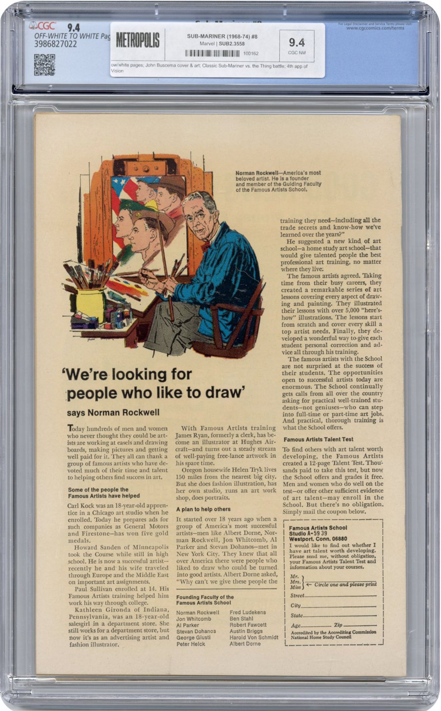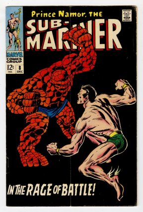 John Buscema cover & art; classic Sub-Mariner vs. the Thing battle; 4th app of Vision; COMIC BOOK IMPACT rating of 6 (CBI)