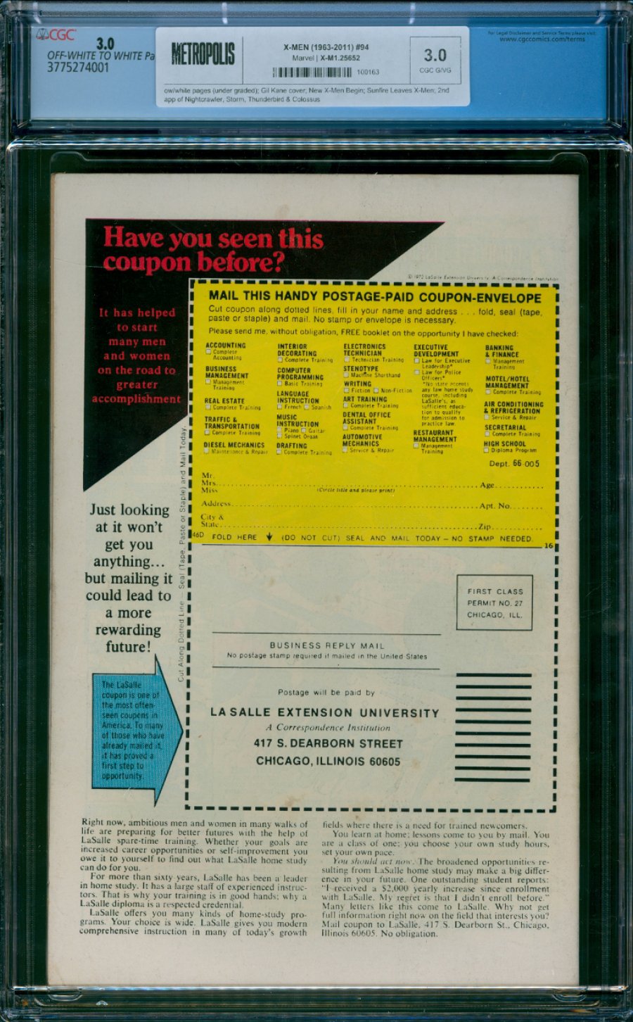 X-Men #94 would be the first regular issue of Marvel’s long-running series to feature the new team of Storm, Banshee, Wolverine, Thunderbird, Colossus, and Nightcrawler alongside founding member Cyclops. Although these characters were introduced in Giant-Size X-Men #1, this is the first proper issue of X-Men to feature the newcomers — who would soon turn a struggling Marvel title into one of the company's best-selling titles.