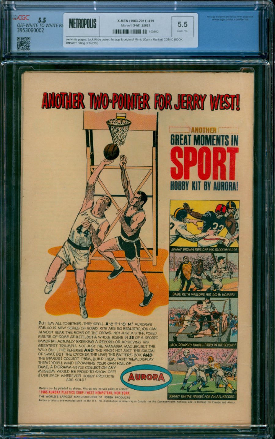 Jack Kirby cover; 1st app & origin of Mimic (Calvin Rankin) COMIC BOOK IMPACT rating of 6 (CBI)In this issue the X-Men encounter a new villain, the Mimic, a bad guy with the ability to copy the powers of any hero he is in the vicinity of, stumbling into the path of several mutants, the Mimic follows Jean Grey back to headquarters where he attempts to overpower the mutants. This battle eventually leads to the Mimic's underground lair, where he is trying to unearth a machine that will make his temporary powers permanent. He is eventually thwarted, his mind is wiped by Professor X, and he is sent off with a new lease on life. Art by Kirby, Jay Gavin, and Dick Ayers.