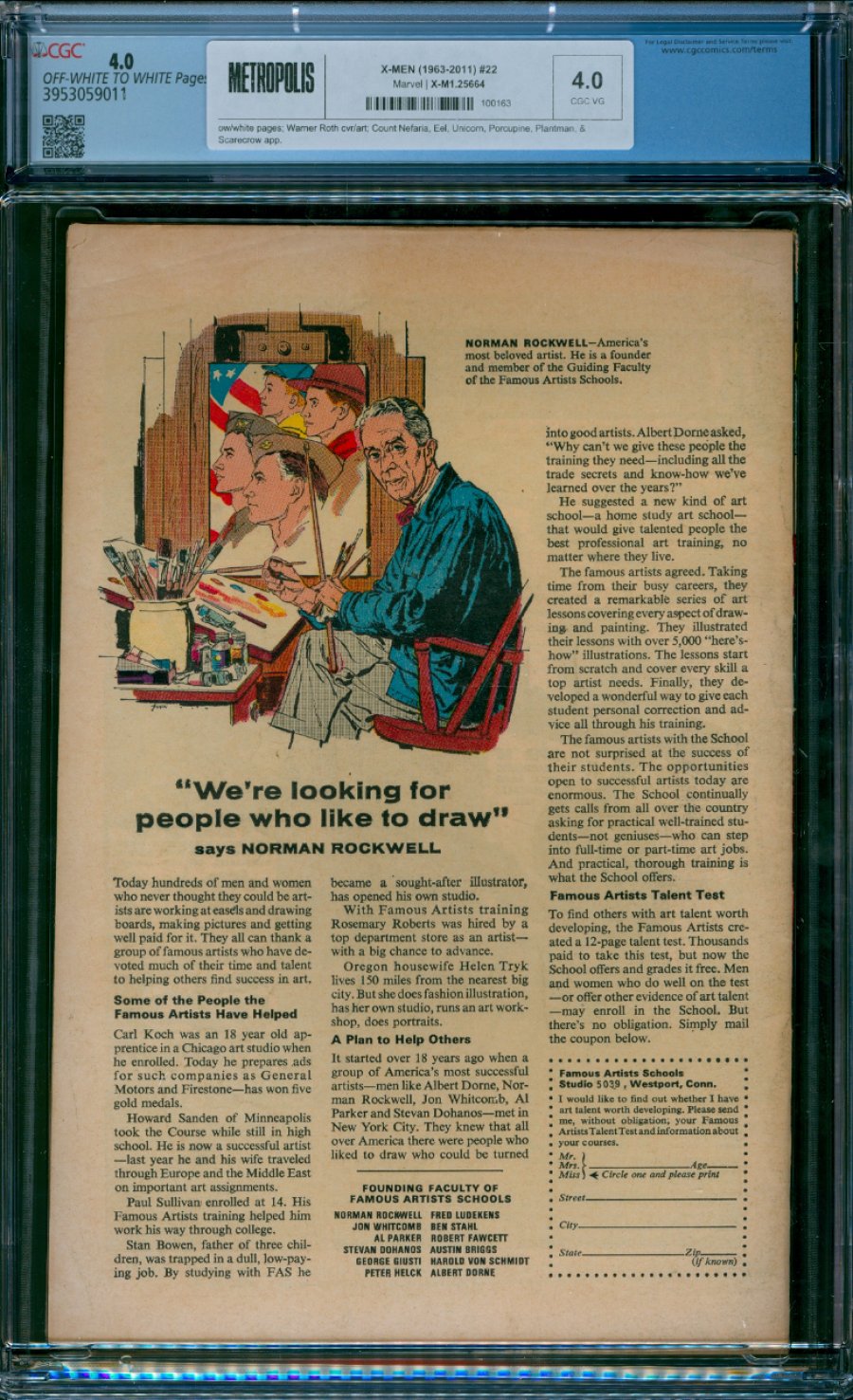 Warner Roth cvr/art; Count Nefaria, Eel, Unicorn, Porcupine, Plantman, & Scarecrow app; COMIC BOOK IMPACT rating of 5 (CBI)Part one of this current adventure finds Count Nefaria returning to the USA, and upon reading about the anti-mutant hysteria sweeping the nation, he decides to try and enlist the X-Men in his evil machinations. He creates illusions of several X-Men in order to lure their teammates into his clutches, his assemblage of sidekick villains help him capture the team. Unicorn, Scarecrow, Eel, Plantman, and Porcupine are all perfectly equipped to counter the X-Men, who, after their capture, refuse to assist Nefaria with his wicked plans. Art by Jay Gavin and Dick Ayers.
