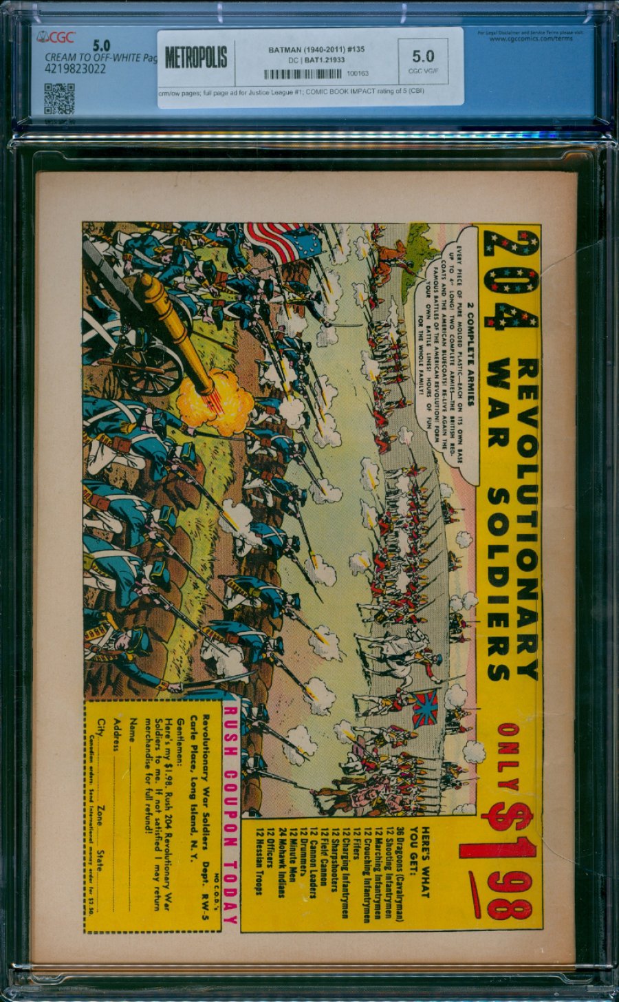 full page ad for Justice League #1; COMIC BOOK IMPACT rating of 5 (CBI)