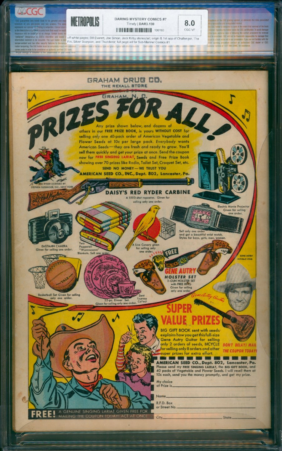 Bill Everett, Joe Simon, Jack Kirby stories/art; origin & 1st app of Challenger, The Fin, Silver Scorpion, and Thunderer; full page ad for Sub-Mariner Comics #1; COMIC BOOK IMPACT rating of 7 (CBI)